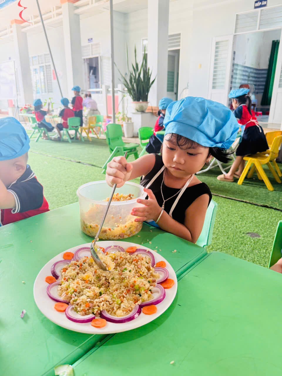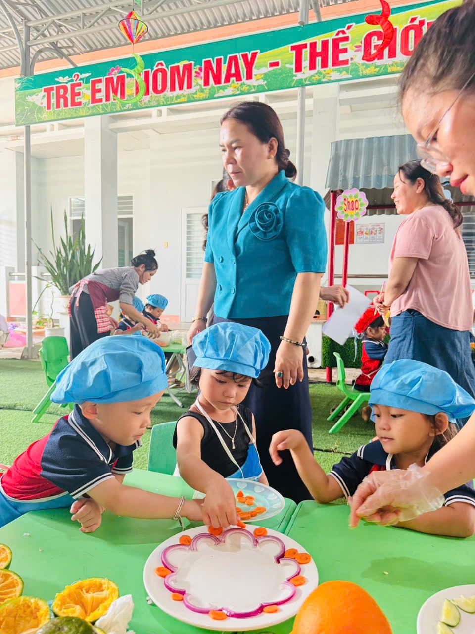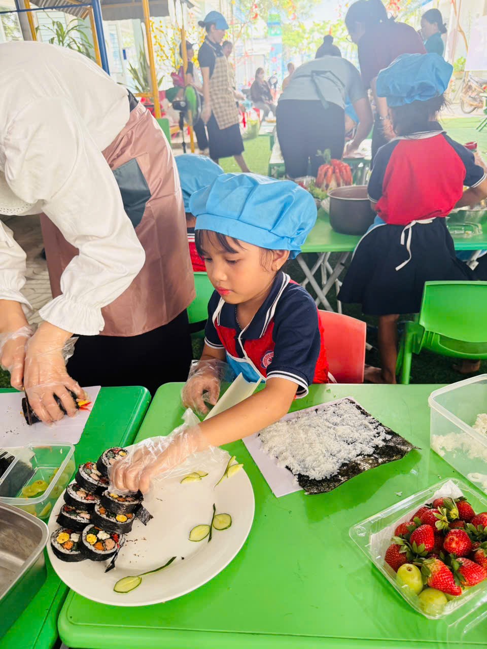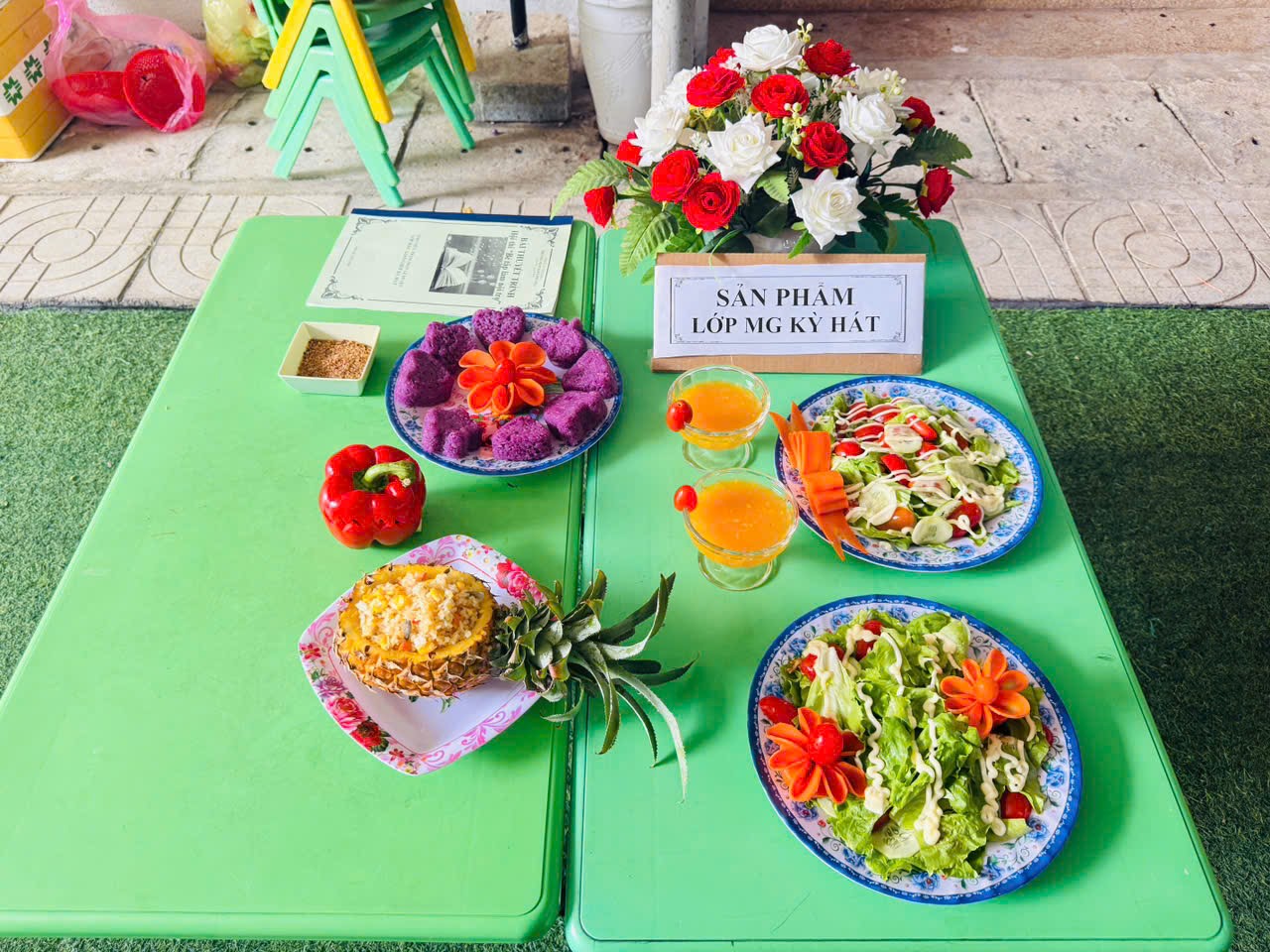 🌹Những món ăn tuy đơn giản nhưng được trình bày sáng tạo, thể hiện sự khéo léo và tinh thần làm việc nhóm của trẻ. Hội thi không chỉ giúp trẻ phát triển kỹ năng tự phục vụ mà còn giáo dục trẻ biết giữ gìn vệ sinh, yêu lao động và biết giúp đỡ gia đình trong những công việc vừa sức.
