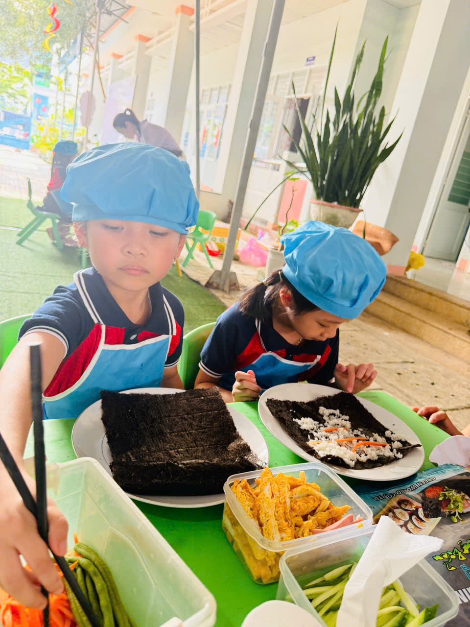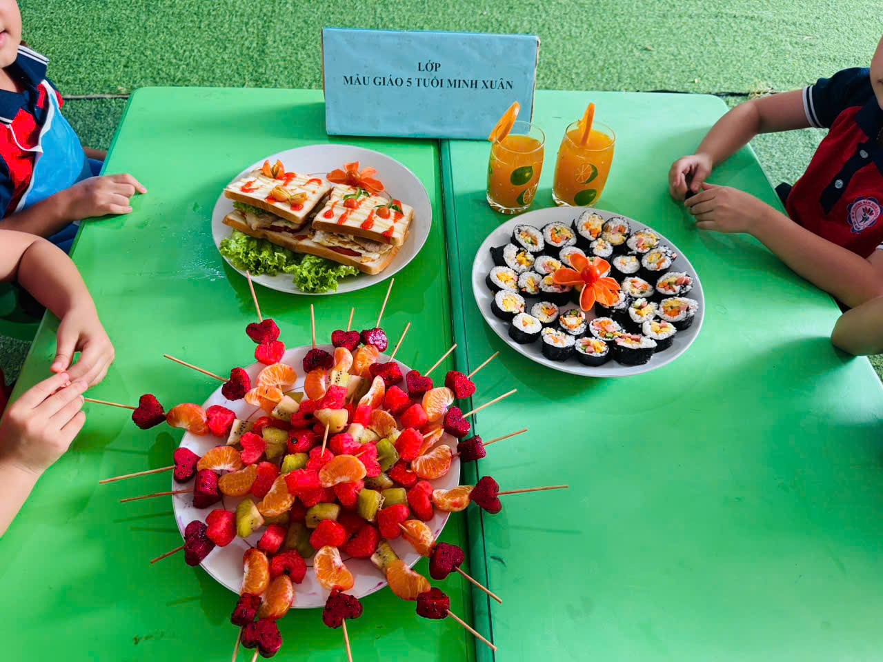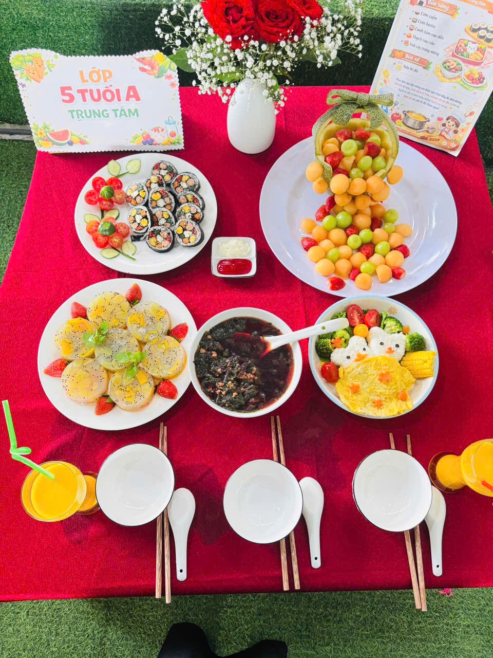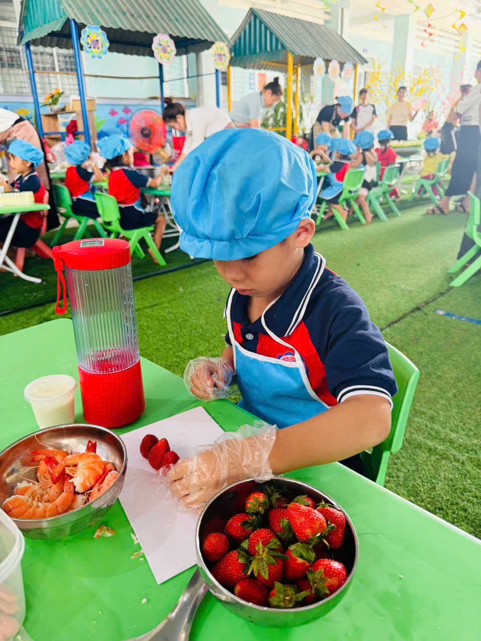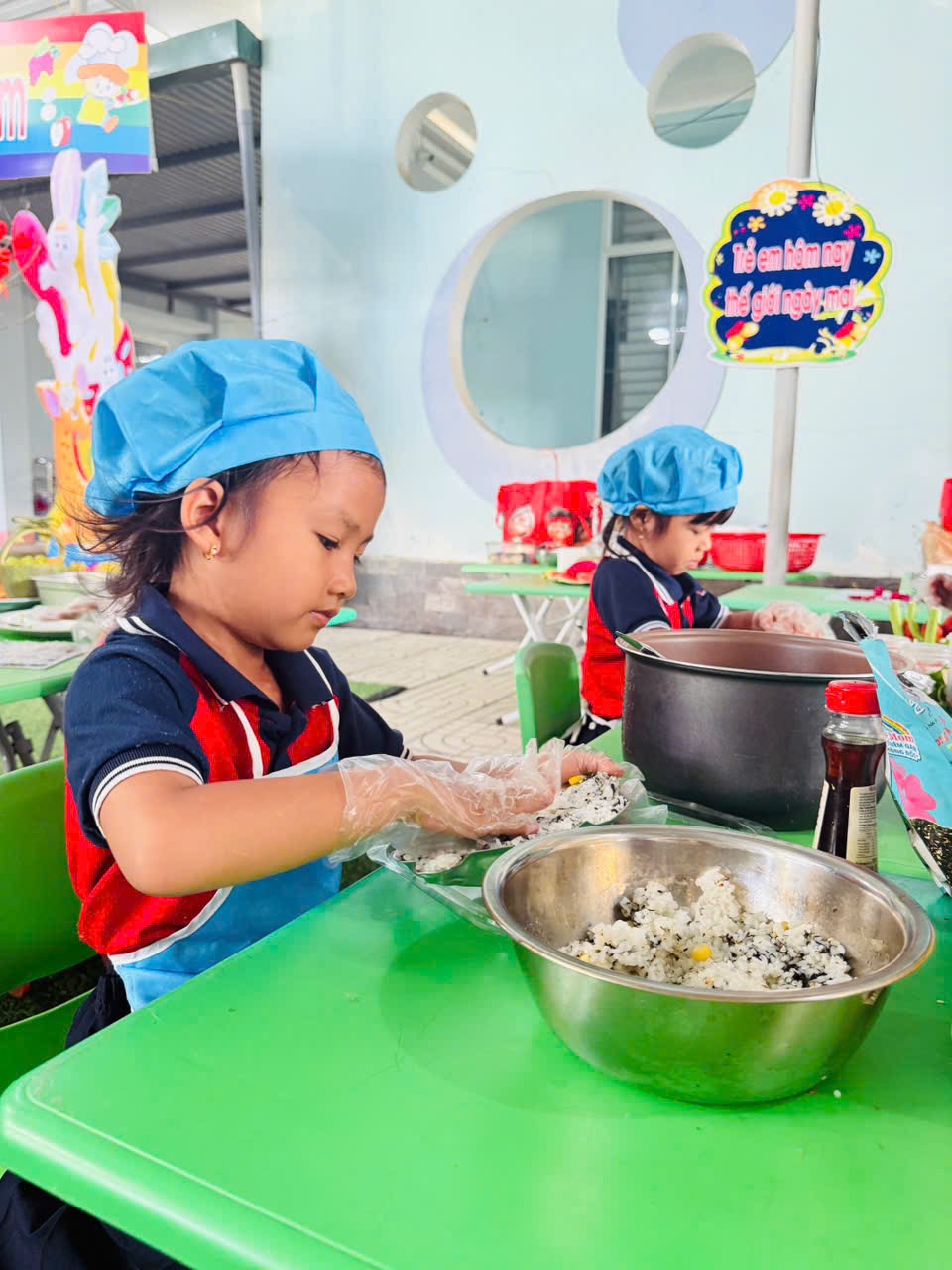 🌹Những món ăn tuy đơn giản nhưng được trình bày sáng tạo, thể hiện sự khéo léo và tinh thần làm việc nhóm của trẻ. Hội thi không chỉ giúp trẻ phát triển kỹ năng tự phục vụ mà còn giáo dục trẻ biết giữ gìn vệ sinh, yêu lao động và biết giúp đỡ gia đình trong những công việc vừa sức.