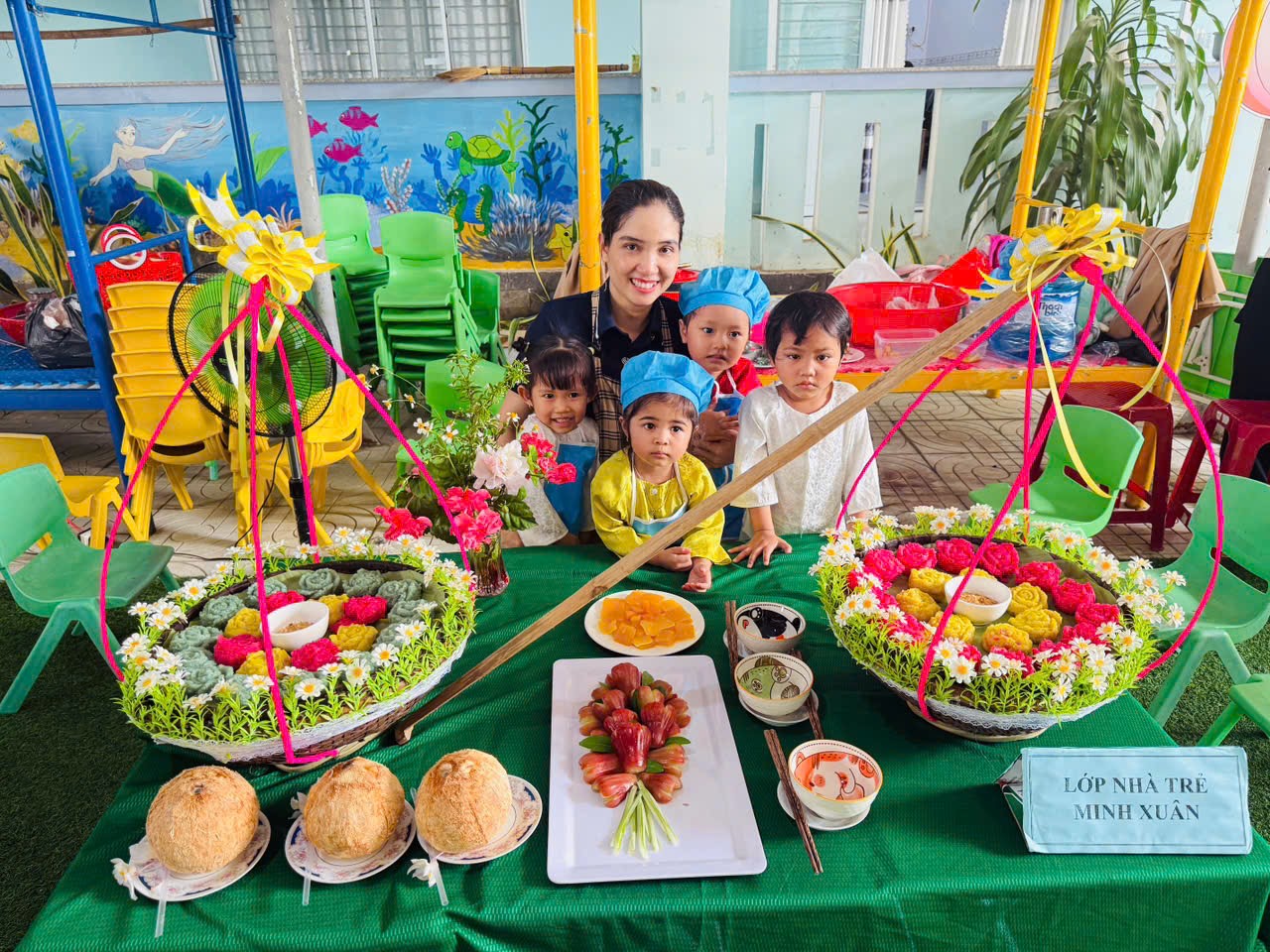 🌹Hội thi có sự góp mặt của 35 trẻ và 9 cô giáo, mang đến không khí vui tươi, hào hứng và đầy sáng tạo. Mỗi đội thi gồm các bé cùng với giáo viên hướng dẫn đã thể hiện rất tốt tinh thần hợp tác và sự khéo léo.